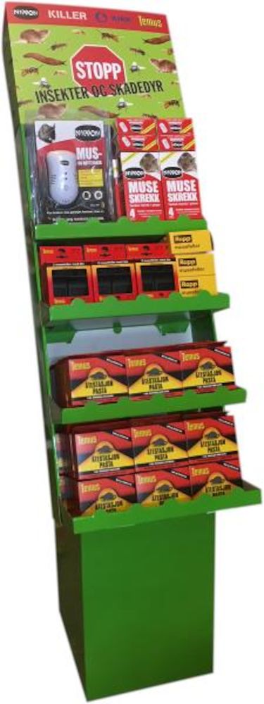Høst og vinter er høytid for at insekter, mus og andre skadedyr trekker inn. Kunder etterspør denne type produkter om høsten, og da kan det være lurt å ruste opp sortimentet i din butikk. Hos Farveringen finner du blant annet musefeller, insektsnett, midler mot edderkopper, maur, skjeggkre og mye mer.